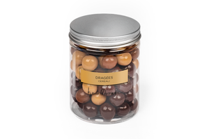 Le Dragées di Iginio Massari Alta Pasticceria in formato miste grandi: Mandorle, Nocciole e Cereali ricoperti di cioccolato prodotto con la selezione della famiglia Massari.