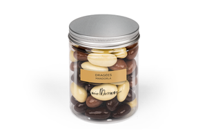 Dragées Mandorla: mandorle (30,5%), zucchero, burro di cacao, fave di cacao, latte intero in polvere, latte scremato in polvere, siero di latte in polvere, burro, maltodestrina, emulsionante: lecitina di girasole, agente di rivestimento: gommalacca, aroma, estratto naturale di vaniglia.