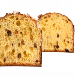 All'interno, preziosi cubetti di arancia candita calabrese e uvetta accompagnano e arricchiscono i sentori aromatici del pregiato burro senza lattosio e della vaniglia.