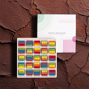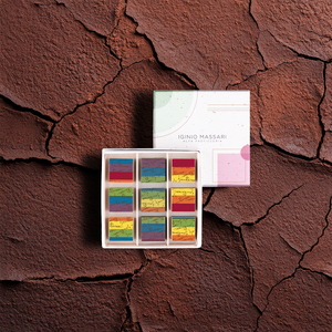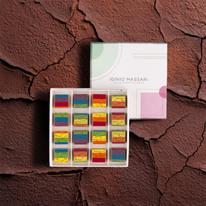 Zutaten: Milchschokolade (Zucker, Kakaobutter, Vollmilchpulver, Kakaomasse, Emulgator: Sojalecithin, natürliches Vanillearoma, Salz), Haselnusspaste, weiße Schokolade (Milchpulver, Kakaobutter, Zucker, Emulgator: Sojalecithin, natürliche Vanille Extrakt), dunkle Schokolade (Kakaomasse, Zucker, Kakaobutter, Emulgator: Sojalecithin, natürliches Vanillearoma), Pistazienpaste (Pistazien, Distelextrakt, Farbstoff: E131), Mandelpaste, Spezialität auf Basis von Kakaobutter und Himbeere (Zucker, Kakaobutter, Himbeerpulver, Emulgator: Sonnenblumenlecithin), Dekoration [Kakaobutter, Zucker, Tapiokastärke, Vollmilchpulver, fettarmes Kakaopulver, Pflanzenextrakte mit färbender Wirkung (Färberdistel- und Zitronenkonzentrat, Spirulina-Extrakt, Rote Bete und Karotte). Konzentrat), Farbstoff: E120, Emulgator: Sonnenblumenlecithin, natürlicher Vanilleextrakt].