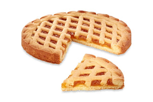 The Milan shortcrust pastry base, enriched with vanilla pod seeds and grated lemon zest, contains a velvety jam, for a perfect balance of flavours, aromas and textures. Fragrance and softness come together just as the knife glides through and a rich taste rewards the palate, as perfectly as the shortcrust strips lying on the surface.